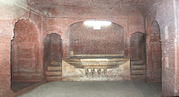 Sardar Jassa Singh Ramgarhia was a great Sikh warrior. Along with two other famous Generals, Sardar Jassa Singh Ahluwalia and Sardar Baghel Singh, he conquered vast territories, up to and including Delhi. From Delhi’s Red Fort, he ripped off the main ( 6.25 ft x 4.50 ft x 0.75 ft ) marble slab from the famous Moghul Throne (popularly known Takhat-e-Taus) and brought it to the Ramgarhia Bunga in Amritsar. He also brought 44 red-stone pillars, ornamented with engraved designs. These were used for supporting the roof of the upper storey of the Bunga. These 156 feet tall towers are designed as identical minarets and their red-stone facades are decorated with delicately chiseled patterns.