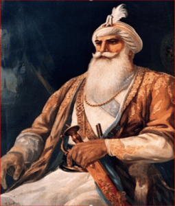 In March 1766, Nawab Jassa Singh Ahluwalia led an army of more than 25,000 Sikh soldiers and defeated Swai Madho Singh of Jaipur. He made the Jaipur King to issue coins in the name of Guru Gobind Singh, with the words “Sat Kartar” (in Hindi) and his pet Eagle (Baaj) on the obverse. Jaipur and the year of issue were mentioned on the reverse.