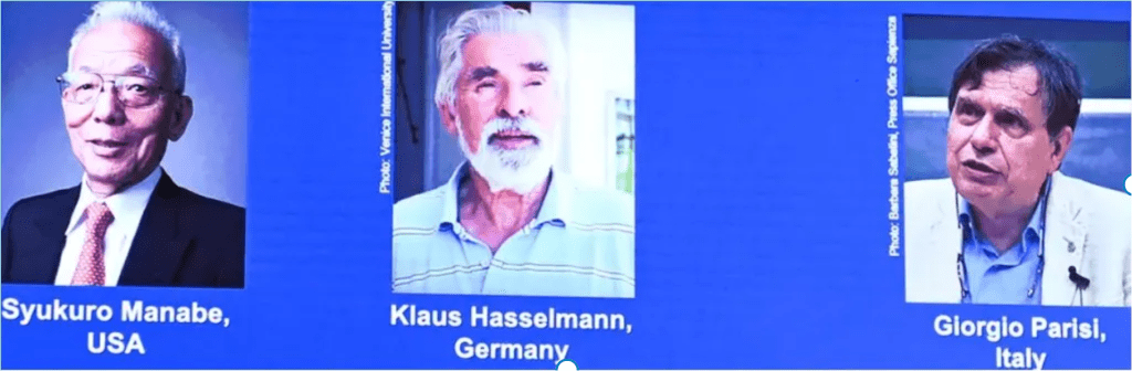 Three scientists shared this year’s Nobel Prize in Physics for the physical and mathematical models developed by them for explaining the underlying Order in the Disordered Systems present in nature, and predicting accurately the Climate Change due to Global Warming.